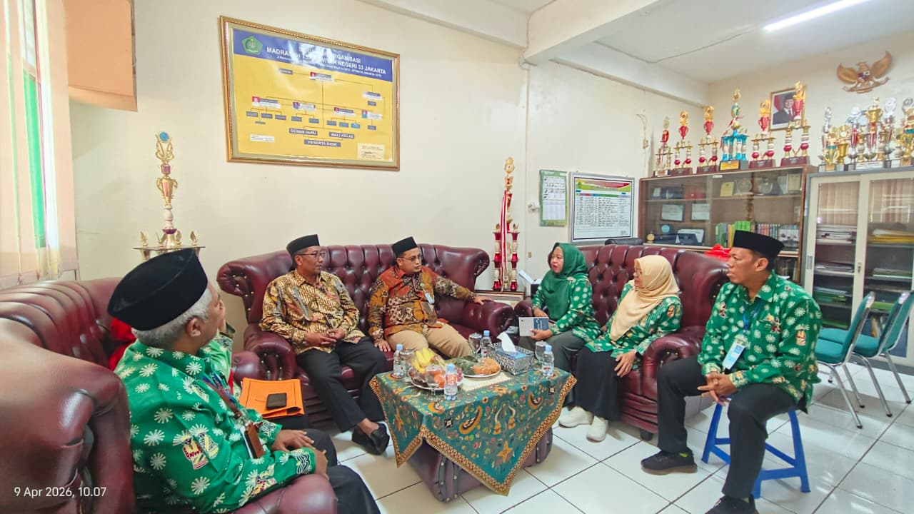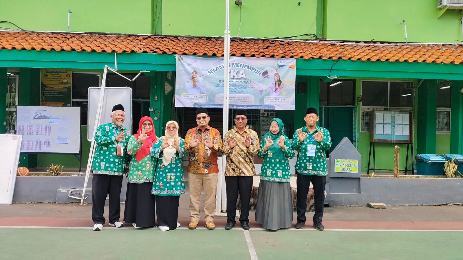 Pelaksanaan Tes Kemampuan Akademik (TKA) hari kedua bagi peserta didik kelas 9 di MTsN 33 Jakarta berjalan dengan tertib dan penuh khidmat. Sebagai bentuk komitmen dalam menjaga kualitas evaluasi pendidikan, MTsN 33 Jakarta menerima kunjungan monitoring langsung dari jajaran pimpinan Kantor Kementerian Agama Kota Jakarta Timur, yakni Kepala Seksi Pendidikan Madrasah, Bapak H. Jumanto, M.Pd., serta Kepala Sub Bagian Tata Usaha, Bapak H. Amirullah, S.Pd.I.